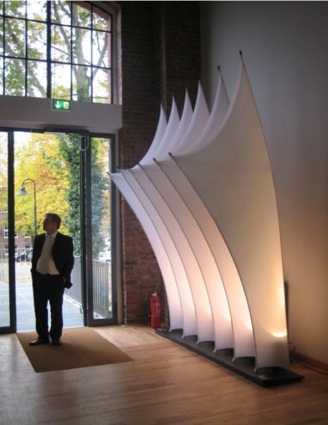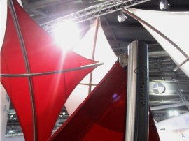 Die ausdrucksvollen Tuchobjekte Light-Structures ® by Lars Meeß-Olsohn werden u.a. vom namhaften Konfektionär aeronautec aus Seeon am Chiemsee gefertigt. Dabei kommen ausschließlich hochwertige Materialien wie Edelstahl und Gewebe (wie z.B. Fluorpolymer) zum Einsatz, damit die Freude über die Segel lange währt.