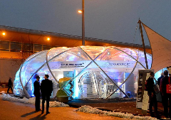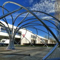 Als modulare, schnell zu errichtende Bauweise bietet LOOPs eine außergewöhnliche Ästhetik mit den Aluminium-Bögen und der möglichen Bespannung mit durchsichtigen Folienkissen, weißen oder bedruckten Segeln, oder einfach nur als beeindruckendes Skelett der Leichtbaukonstruktion!
