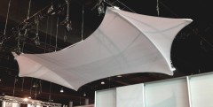 Das BatSail verfügt über eine geschraubte Aluminium-Unterkonstruktion; weiß gepulvert, an vier bis sechs Punkten abzuhängen.