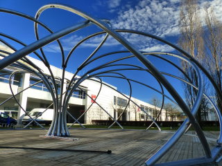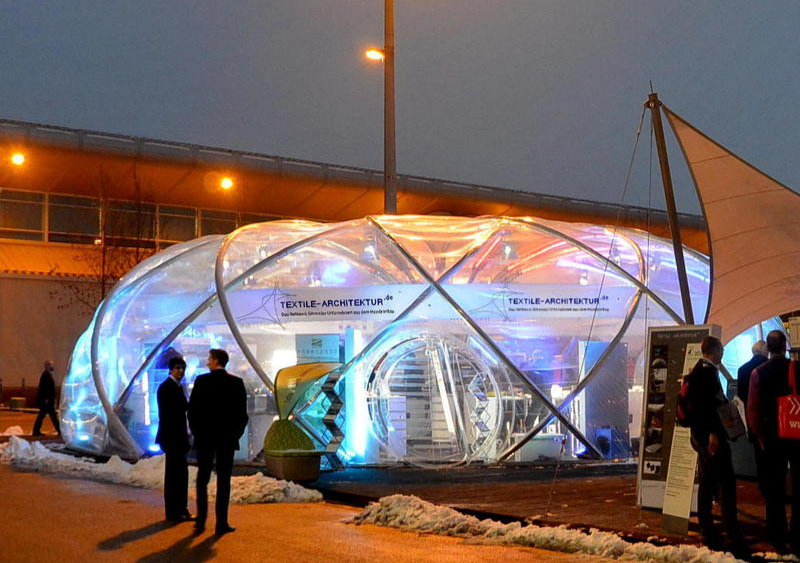 LOOPs2.0 is an innovative pavilion concept that is supposed to arouse awareness for the subject, “textile architecture” and accomplishes it, too. The covering of the defining skeleton with transparent film cushions and awnings ensures sufficient inward and outward views thereby counteracting any fear of entering. Thanks to the transparent covering, the lighting works on the inside and outside, whereby the shell simultaneously reflects external light sources and on the whole contributes to a fascinating spatial experience. A minimalistic elementary concept that perfectly embodies the interplay between design, engineering skill and handcrafted execution.
