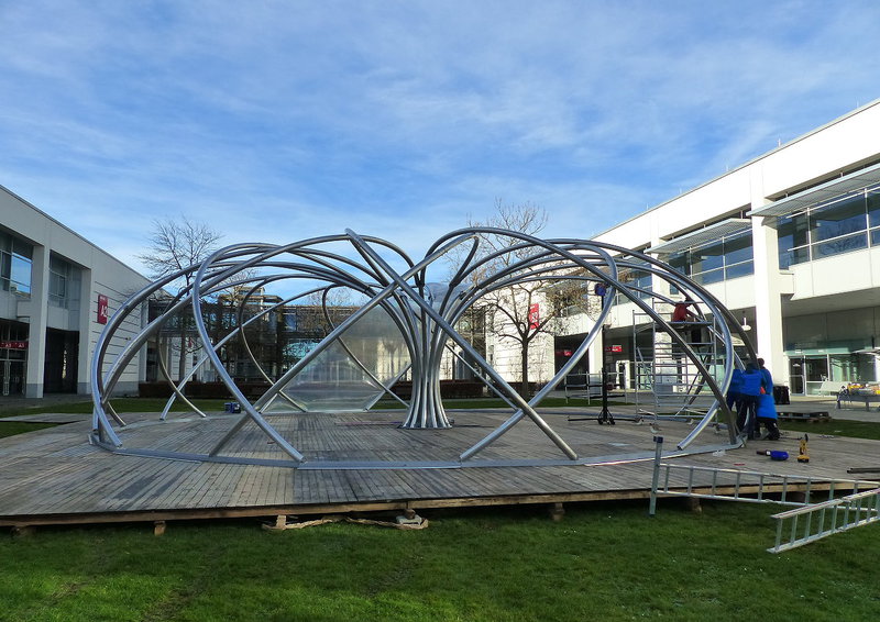 Unser ProjekTORUS hat 7 m Durchmesser und er wird über ein stählernes Dreieck an Seilen aufgehängt.