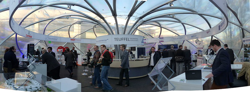 Der erste Einsatz fand als vielbeachteter Demonstrator im Außenbereich der Internationalen Fachmesse BAU im winterlichen München statt und bewieß sein großes Potential als Kommunikator trotz Schnee und Kälte.