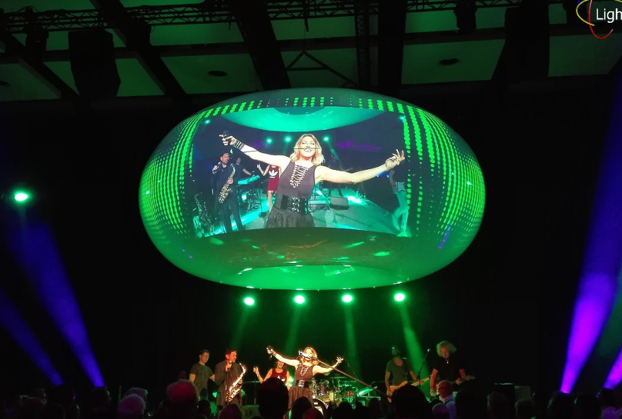 Die Technologie der Aufzeichnung und der verzögerungsfreien Übertragung von 4K Videos auf die pneumatisch gestützte Hülle ist vorhanden - ein Einsatz auf einer Messe und das Konzert am Juristentag bei Thyssen-Krupp hat alle Besucher begeistert!